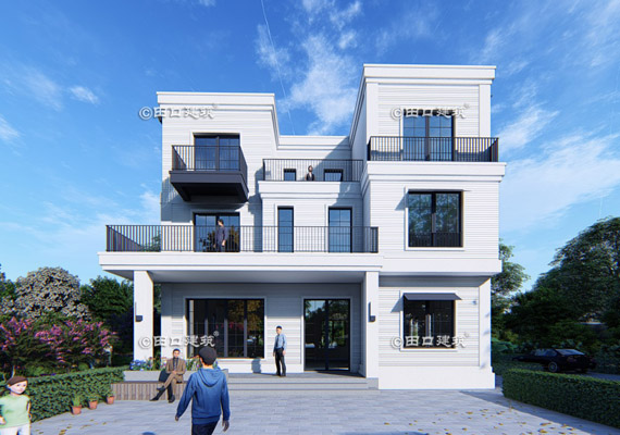 占地面積 142.4㎡ 土建造價 60.0萬 帶底商三層美式別墅